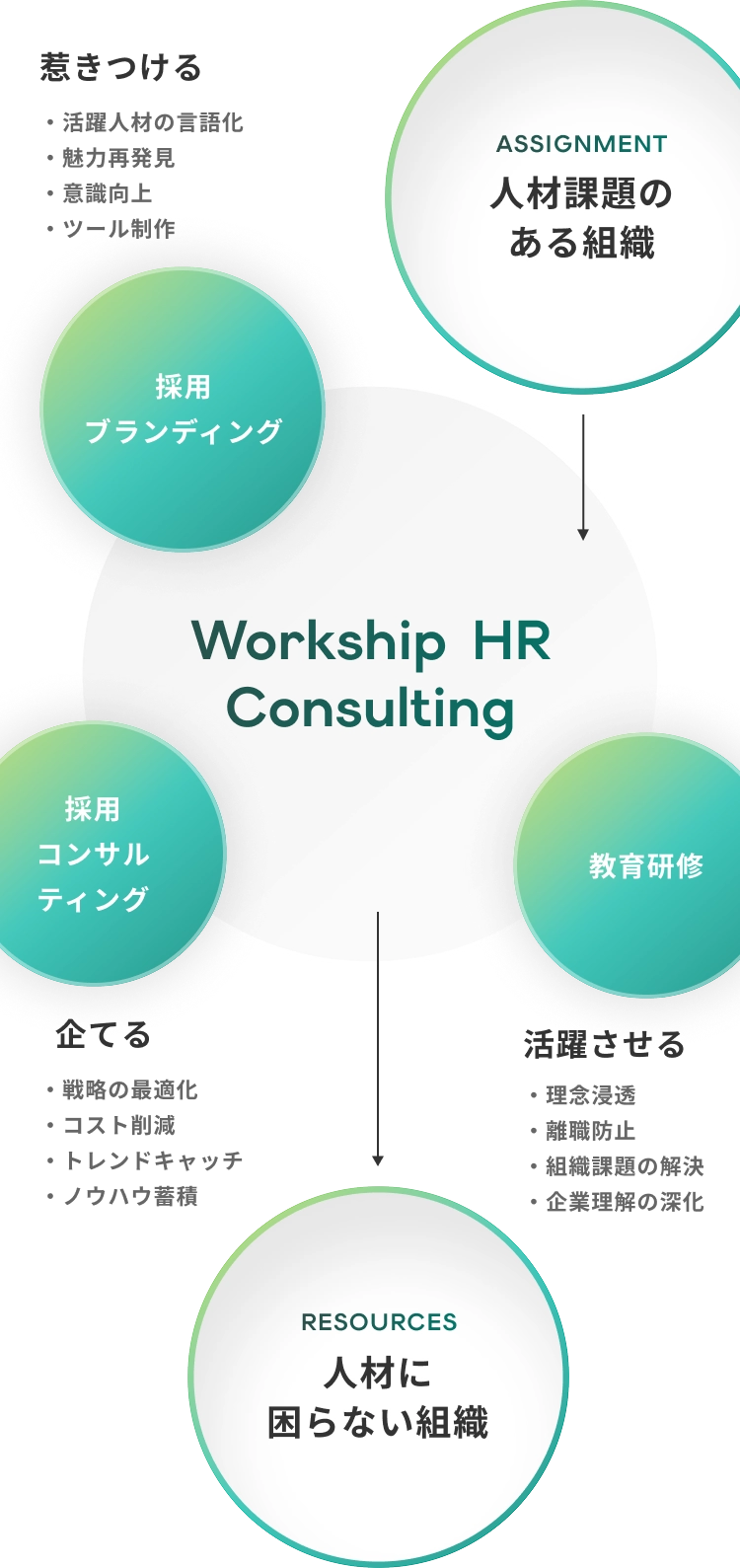 Workshipコンサルティングは、採用ブランディングや採用コンサルティング、採用広報、育成支援までを一貫して提供しています。